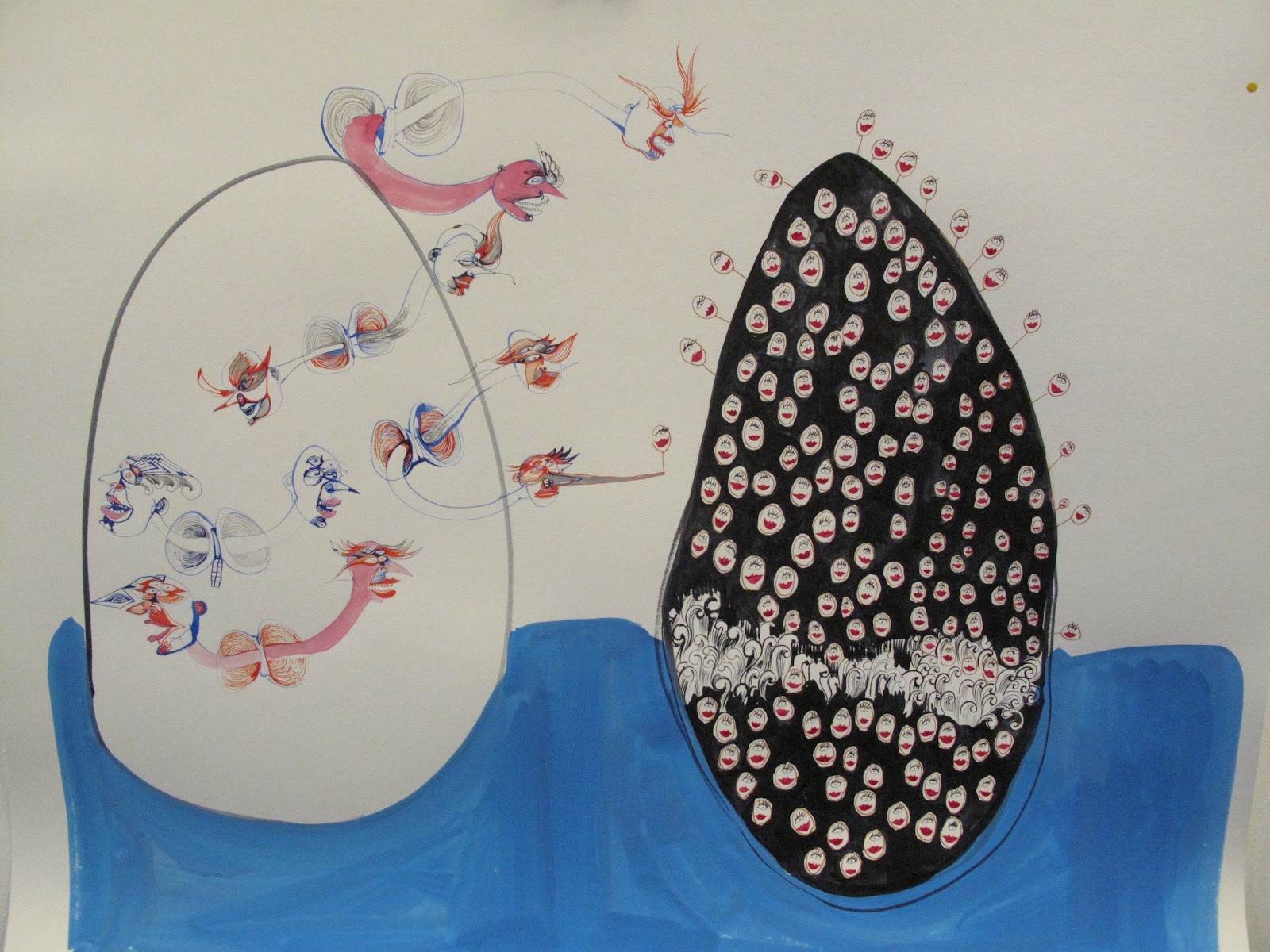 UK based artist Isabel Rock has come to the village to study these two races and to document and explore their stories through her drawings.