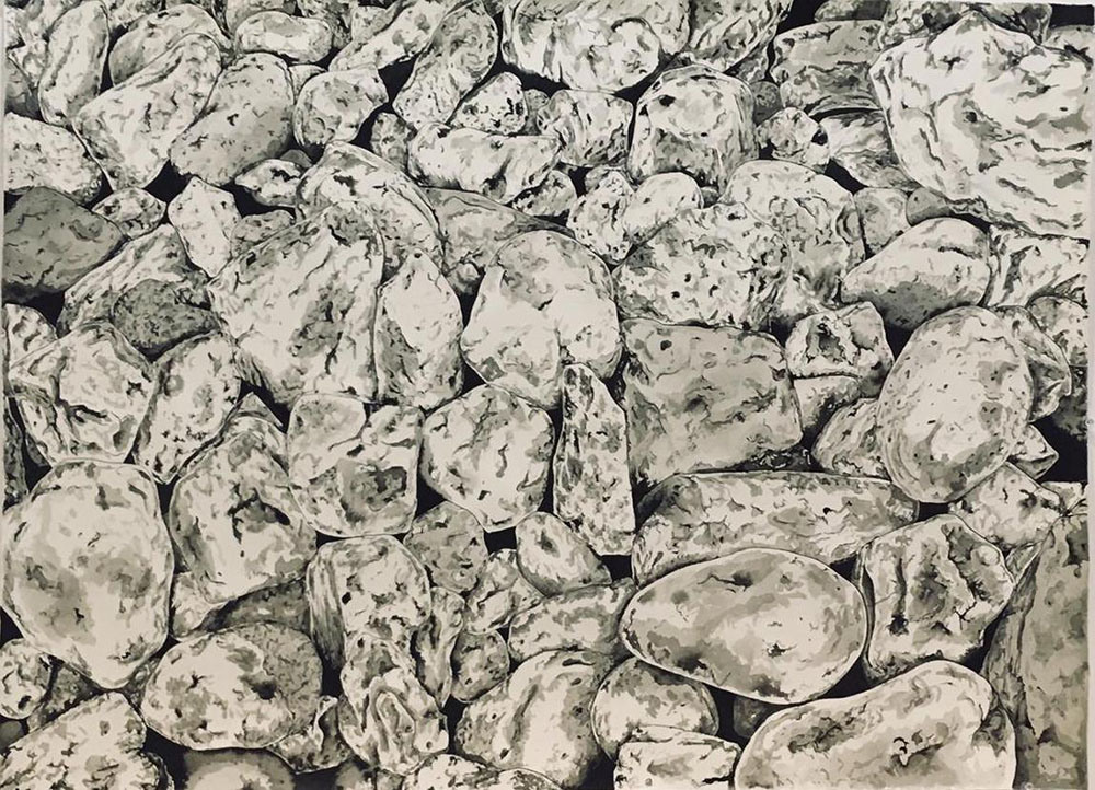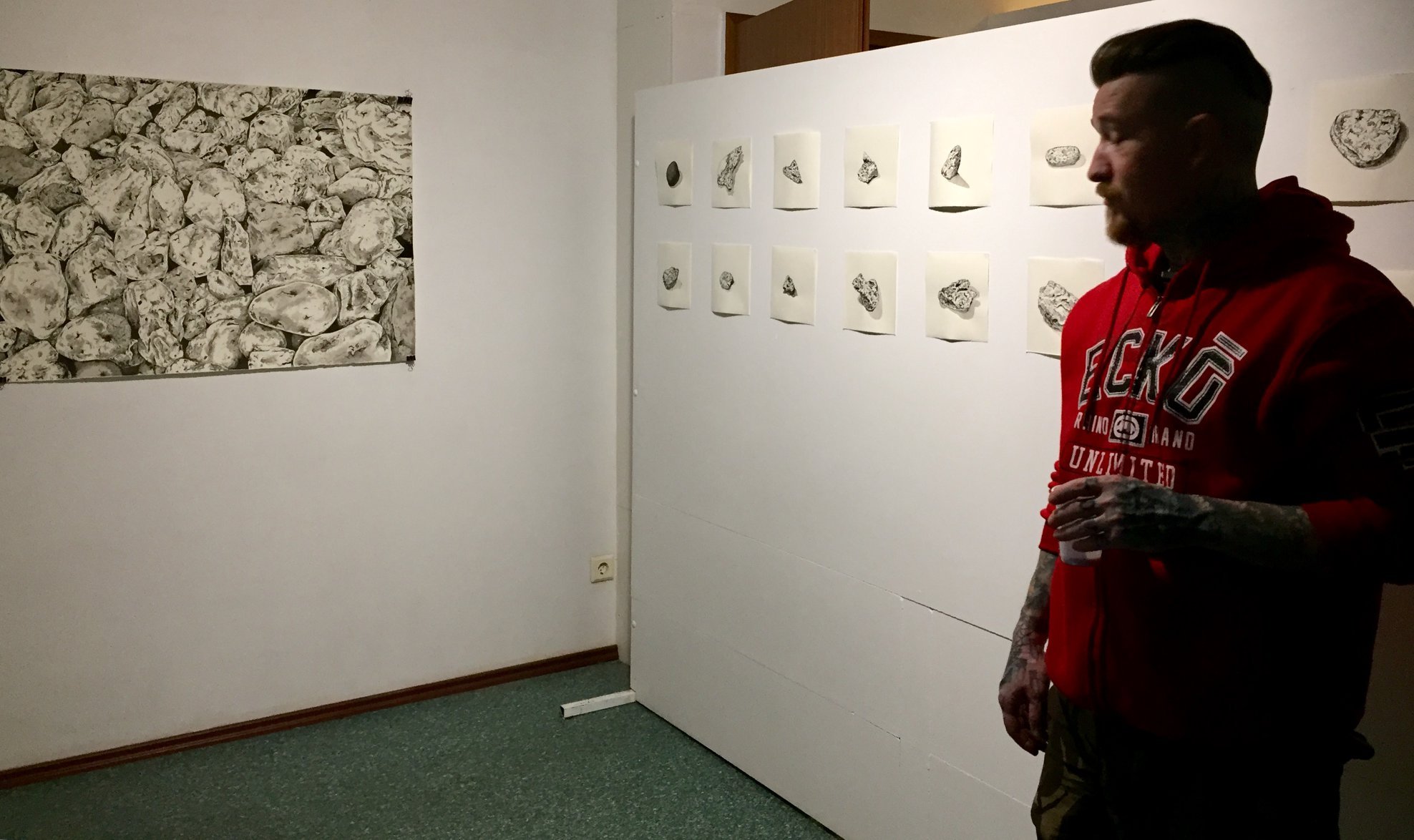 From the moment I got to Olafsfjordur I was intrigued by the variety of stones in the environment. So I started drawing them, making small portraits of isolated rocks. Could they be something other than stones? An island? An organ? The small portraits developed into a bigger image, a sea of stones. And later, into videos. In a sequence of three scenes, I investigate possible triggers of relations with the rocks, first burying them, then stacking them, and finally resting with them. Maybe it’s time to leave.