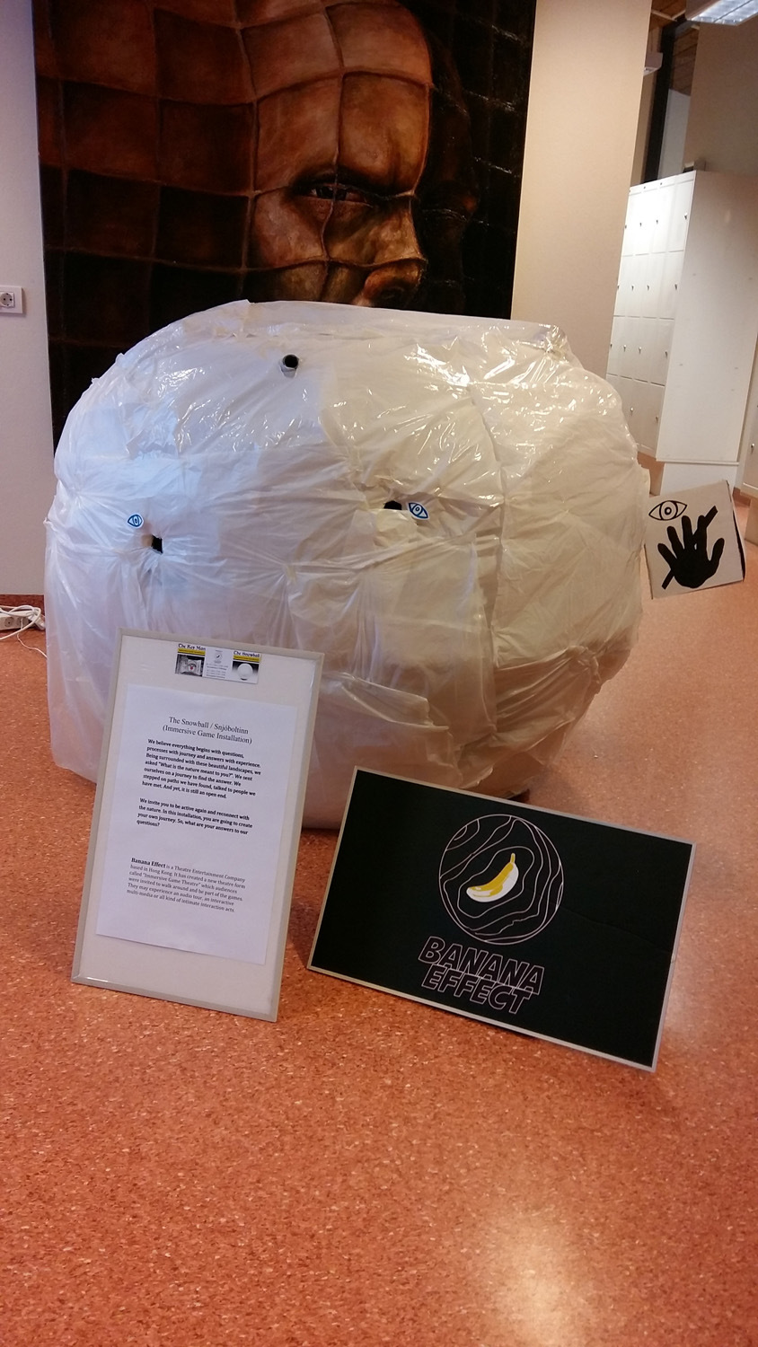 It is an interactive sound and visual installation, with a conception of the nature in Ólafsfjarðar. It is designed as a white sphere with radius 50-60 cm