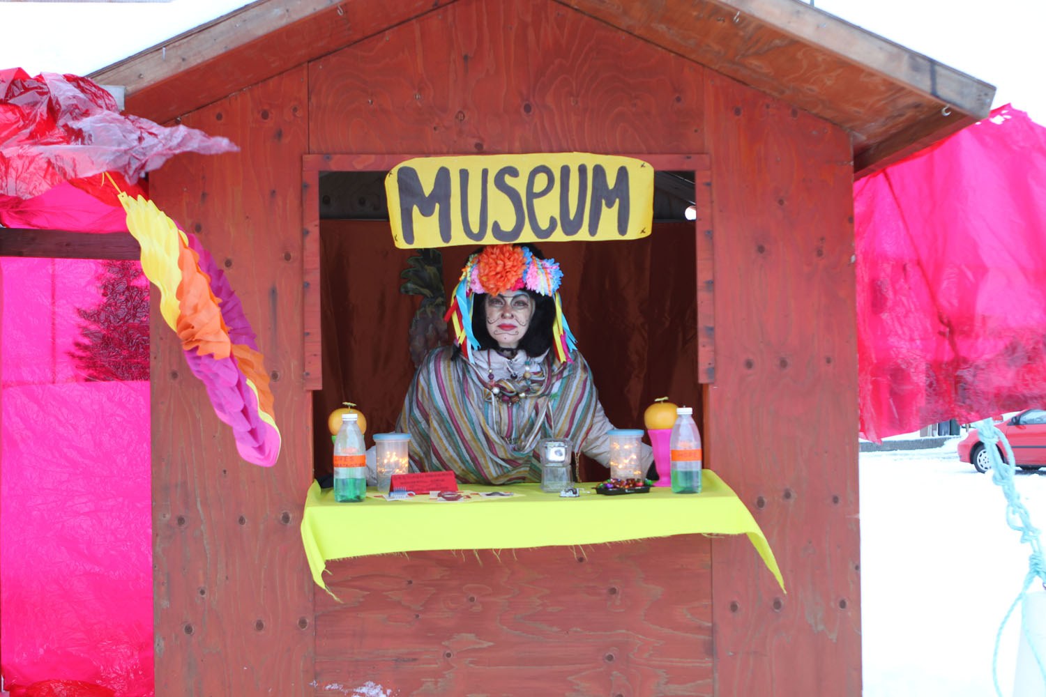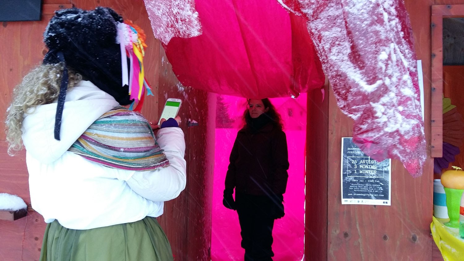 Skammdegi gives her the opportunity to embed within a community enabling the development and exploration of characters, stories, and the joy of exchange as well as breaking down barriers between audience and performer. If you meet any unusual characters in Olafsfjordur please have a chat - open your hearts and minds and enjoy.
