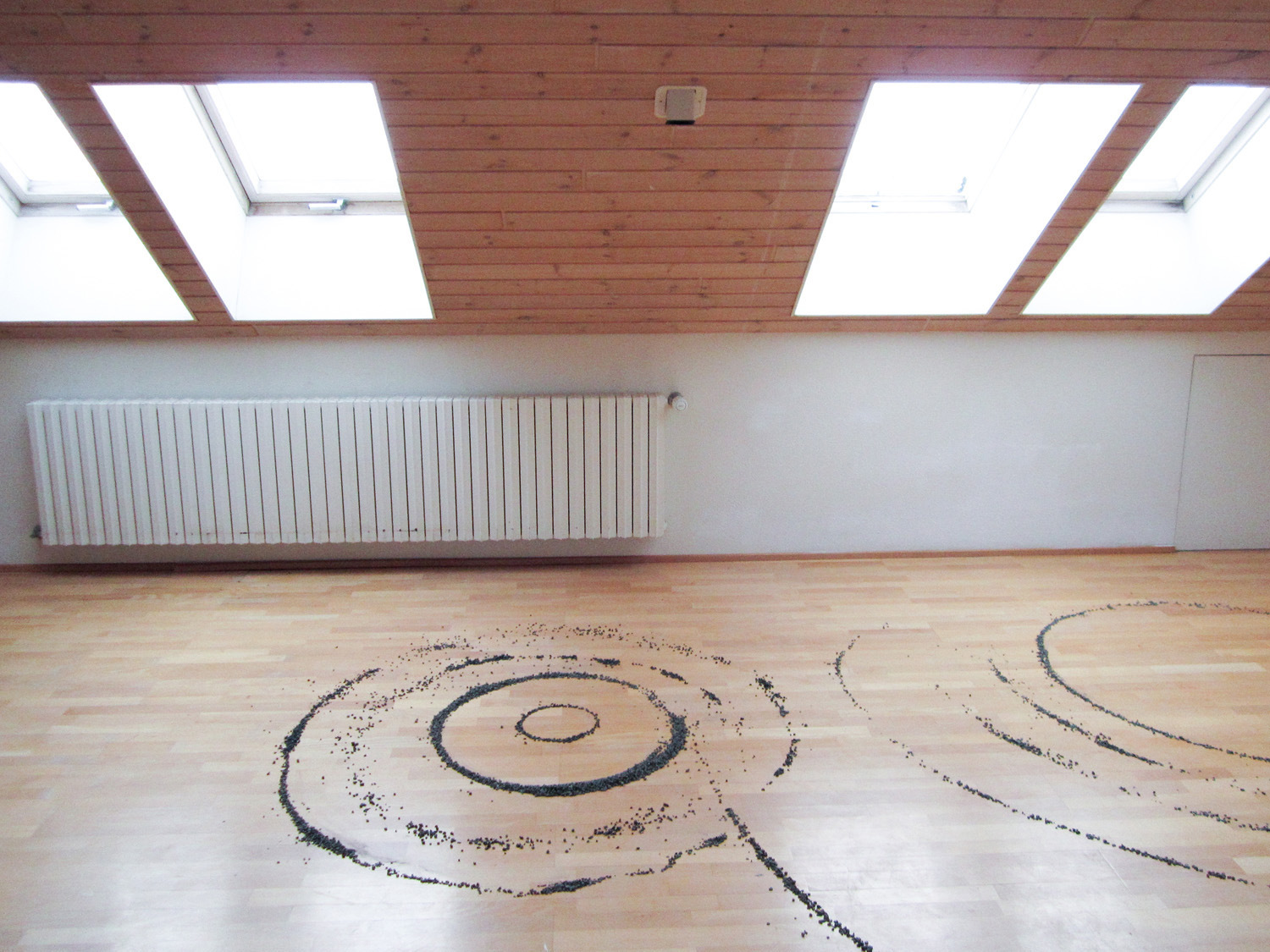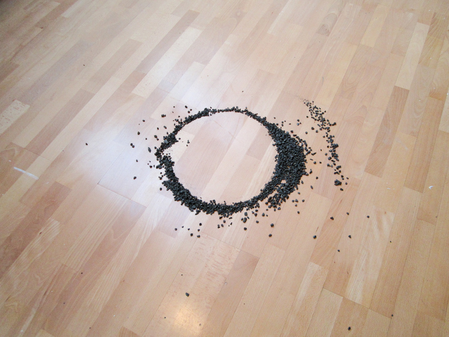 Yannis Zhang builds a site-specific installation with black stones that creates an atmosphere in which visitors can reflect on the relationship between human and space.